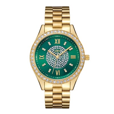 Ladies Jbw Mondrian 1 6 Ct T W Diamond And Crystal Accent 18k Gold Plate Watch With Green Dial Model J6303e Zales